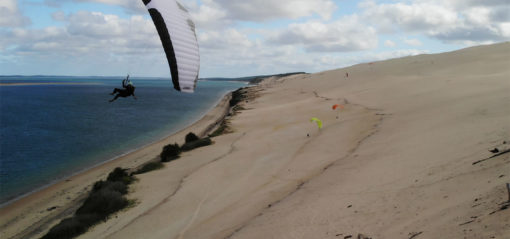 Profitez d’un point de vue exceptionnel sur le banc d’Arguin, l’océan et la forêt des Landes durant un vol en parapente biplace. Les parapentistes débutants apprécient ce lieu pour s’exercer au vol de proximité. C’est ici qu’ont eu lieu les compétitions de vol « Wagga Festival » auxquelles Loulou a participé en tant que jury et pilote.