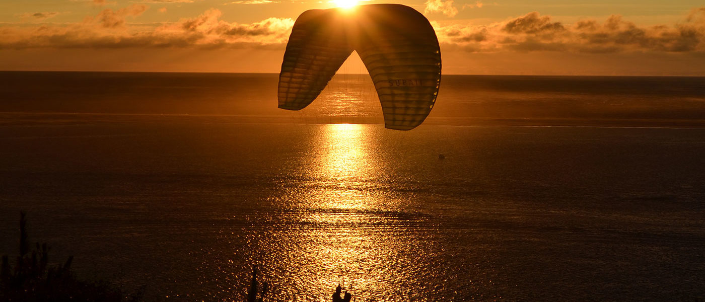Équipé de voiles de différentes tailles, plus le vent est fort, plus on diminue la taille de la voile et l’on vole comme les goélands.