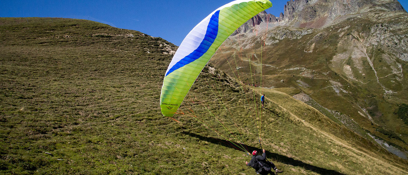 Le col, à 1924 m d’altitude, se situe entre les massifs de Belledonne et des Arves, 3 km à l’ouest du col de la Croix de Fer, il relie la vallée de la Romanche à celle de la Maurienne, l’Isère et la Savoie. Bien connu grâce au Tour de France, il est sans doute un des plus durs cols de Maurienne pour les cyclistes. La route qui vient de Saint-Jean-de-Maurienne est ouverte de juin à octobre, période idéale pour Loulou qui adore profiter des reliefs doux et des pentes parfaitement inclinées pour voler près du sol en parapente. Le panorama y est époustouflant avec vue sur les sommets, les aiguilles d’Arve. Depuis le col du Glandon, placez-vous en haut du parking, votre regard sera naturellement porté sur le Mont-Blanc.